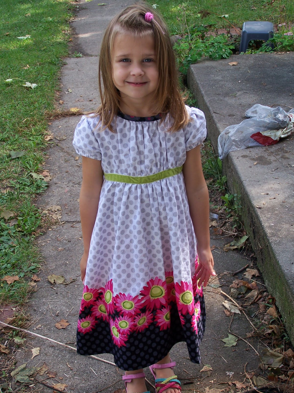 Here is the dress I made for alex...she does love it....it is the fabric....for her, she loves it if it twirls, has a beloved character or is pink and princess or butterflies or the such.